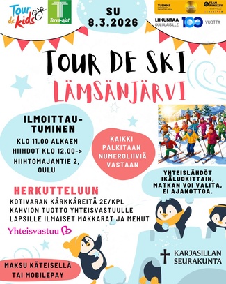 Kaikille avoimet ja ilmaiset lasten Tour de Ski - Lämsänjärven hiihdot sunnuntaina 8.3.2026 kello 12