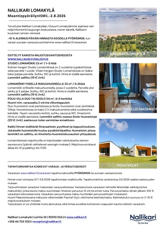 varaat suoraan varaussivustoltamme www.nallikari.fi/varaukset.