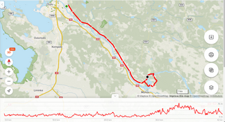 Lähtö ja maali Montan leirintäalueen portilla. Ajetaan Pyhäkosken ja Montan voimalaitosten kautta 11 km:n kierroksia: